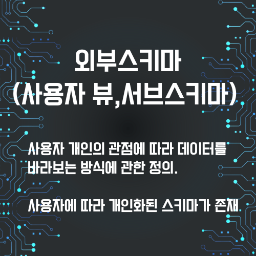 외부스키마는 사용자가 데이터를 바라보는 방식에 관한 정의입니다.
