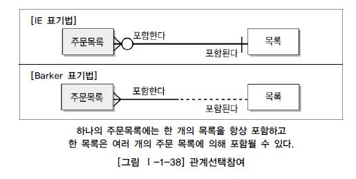 | 선택 | 부모엔터티가 포함할 수 있다. | 원 | 실선 |