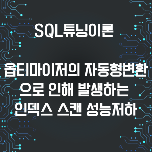 SQL에서 직접 인덱스 칼럼을 가공하지 않았음에도 옵티마이저가 형변환을 위해 자동으로 가공하는 경우가 있습니다. 옵티마이저가 인덱스 칼럼을 가공했기 때문에 INDEX RANGE SCAN을 할 수 없게 됩니다.