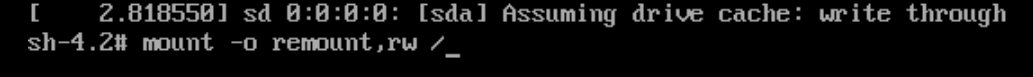 4. EDIT 모드로 실행되면 mount -o remount,rw / 명령어를 입력해 읽기쓰기가 가능하도록 합니다.