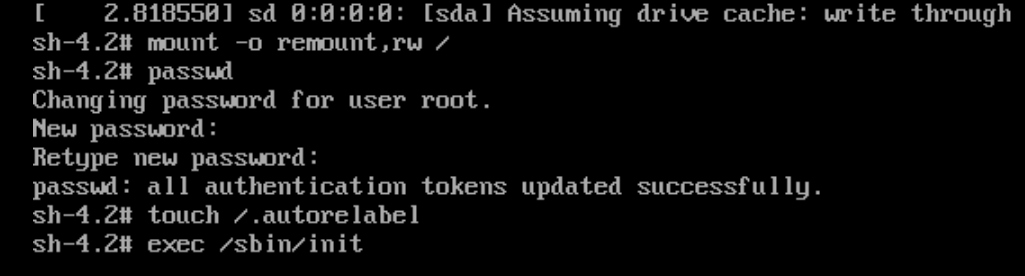7. exec /sbin/init 명령어를 입력해 시스템을 부팅합니다.