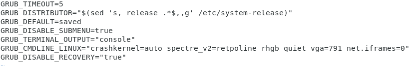 etc/default/grub 파일의 커널매개변수와 관련된 항목인 GRUB_CMDLINE_LINUX에 'net.iframes=0' 을 추가한다.